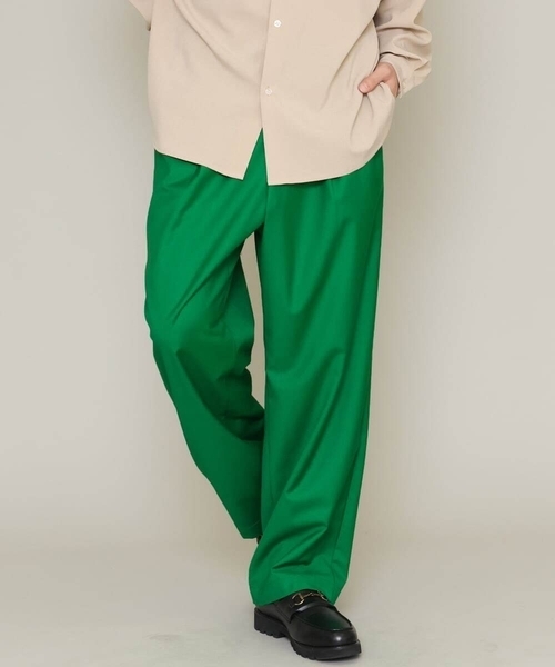 ◆今季らしいカラ―を取り入れたユーティリティーイージーパンツ。◆ 【デザイン】 シルエットはワンタック入りで腰回りにゆとりを持たせ、裾にかけてテーパードさせたワイドシルエット。 今季らしいカラ―リングがポイントです。 トレンドデザインのワンタックにすることで外出時でもサマになるデザインにしました。 ウエストのドローコートとぐるりゴムのイージー仕様のため、リラックスして着用できます。 履くだけ今季らしい着こなしになるトレンドボトムです。 【素材】 さり気なく微光沢感のあるきれいめ素材を使用。 シワになりにくく、イージーケアで洗濯機で気軽に洗えるため、お手入れも簡単でデイリーユースに着用が可能です。 【スタイリング】 きれいめであればシャツ、カジュアルであれば、ニットやカットソーなど、様々なトップスに合わせられるトレンドボトムです。 今季はトレンドのニットアンサンブルや柄カーディガン、ショートブルゾン合わせがオススメです。 ---------------- 透け感:なし 裏地:なし 伸縮性:なし 光沢感:ややあり 生地の厚さ:普通 ---------------- ≪お気に入り登録機能の使い方≫ ■商品のお気に入り登録(ハートマークをクリック) 再入荷通知や値下げ等、お得なご案内を受けることができます。 ---------------- ※【グリーン・ブルー】のM/046サイズ、L/048サイズはWEB及び一部店舗限定販売です。 ※お使いの液晶環境により、色味が多少異なる場合がございます。予めご了承ください。 ※サンプルにて撮影しておりますため、お届けの商品と仕様が若干異なる場合がございます。予めご了承ください。