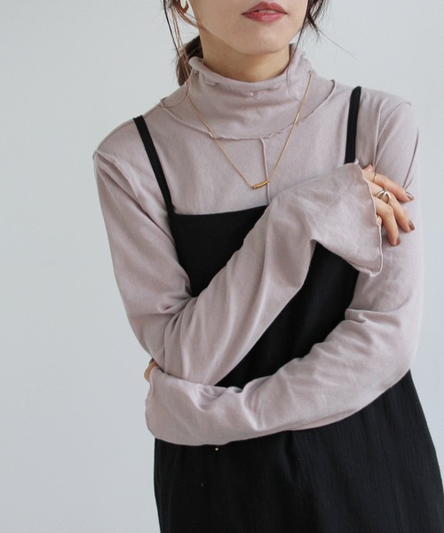 毎シーズン人気のシアートップスがリニューアルして登場! 普段のコーディネートにプラスするだけで、旬のニュアンススタイルが楽しめるハイネックTシャツ。 ボディの色と同色のメロウフリルデザインが、シンプルながらも女性らしさを演出してくれます。 透け過ぎない程よい肌見せが叶うカットソー素材でコーディネートに抜け感をプラス。 センターシームがアクセントになり、メインとしての着こなしはもちろん ワンピースやシャツ、チュニックなど様々なアイテムとのレイヤードスタイルにも活躍の万能アイテムです。 デイリー使いしやすく、色違いで揃えるのも◎ 袖口にはスリット入りでさり気なくデザイン性があるのも魅力的◎ 程よい高さのハイネックで締め付け感が無くストレスフリーな着心地が叶います。 伸縮性のある柔らかなカットソー素材。 薄手で肌触り良く快適に着ていただけます。 - - - - - - - - - - - - - - - - - - - - - - - - - - - - - - - - - 透け感:ややあり 裏地:なし 伸縮性:あり 光沢感:なし - - - - - - - - - - - - - - - - - - - - - - - - - - - - - - - - - ※ 撮影時の照明などの環境と、モニターに表示される色味がメーカーにより変わってしまう等の理由により、実際にお届けする商品と、ご覧になられているアイテムの色が若干異なる場合がございます。ご了承下さいませ。