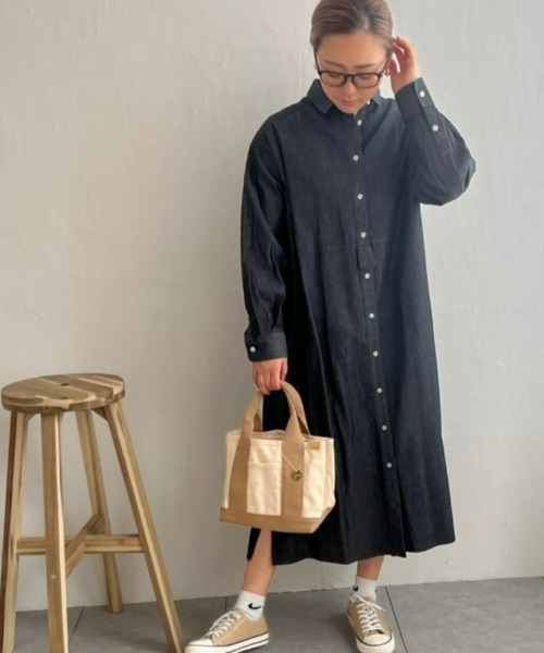 ワンピースとしても、ボタンを開けて羽織りにも使えるデニムワンピース。背中の刺繍は LBC オリジナル!トレンドのジレとコーディネートするのもおすすめです。【素材】デニム素材。【デザイン】胸元切り替えで、背中にオリジナル刺繍。【ポイント】一枚でも羽織りでも使えるデニムワンピ。今年は刺繍を背裏に変更、着丈も伸ばし一枚でサマになるアイテムに仕上げました。