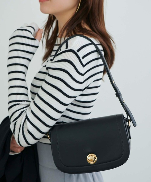 ラウンドしたフォルムが女性らしいフラップショルダーバッグシンプルながらも、フロントのゴールドの金具が上品なアクセントになったフラップショルダーバッグ。ラウンドしたフォルムが、女性らしい印象を与えてくれます。ショルダーは長さの調整が可能で、スタイリングに合わせて持ち方を変えられるのもポイントです。▼ATTENTION▼※摩擦や汗、雨等で濡れた場合、他の衣料に色移りする場合がございますのでご注意下さい。※撮影時のライティング、PCやスマートフォンの環境により写真の色味が実際の商品と異なって見える場合がございます。ご了承の上お買い求め下さいませ。※モデル着用画像は実際の色と多少異なる場合がございますのでマネキン画像をご確認ください。※製造過程や素材により染料等の臭いが強い場合がございます。臭いが気になる場合は一度陰干しされてからご使用下さい。※着用衣装はすべて参考商品です。――――――――――《 お買い物をもっと楽しむために! 》■商品のお気に入り登録お気に入りの商品やカラーを登録していただくと値下げ・在庫1点・完売後の再入荷などの通知を随時受け取ることができます。■ブランドのお気に入り登録新商品の発売や再入荷、セール、クーポン配布などEditSheenのお得な情報を受け取ることができます。