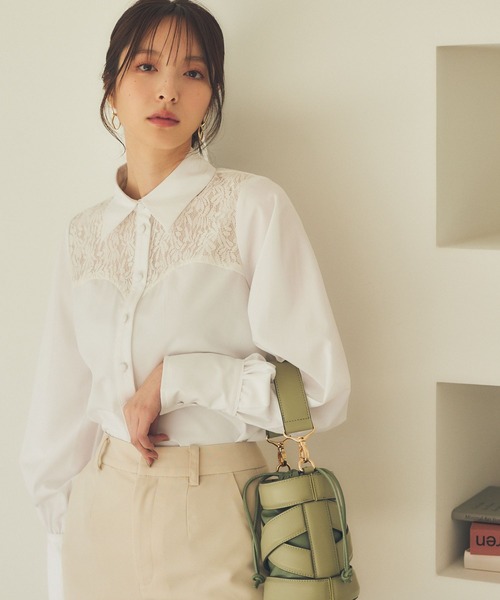 胸元のレース切替がスタイリングにポイントを加えてくれるブラウス。 繊細なレースが上品な雰囲気を演出してくれます。 レース部分は二重になっており、透け感がないのもうれしいポイント。 ロングカフスで手首がきれいにみえ、一枚でもサマになるシルエットに。 ジャケットインにも着やすい生地感で、オフィススタイルにもぴったりのアイテムです。 ーーーーーーーーーーーーーーーーーーーーーーー ▼ 商品のお気に入り登録 ▼ 完売カラーの再入荷通知や、ラスト1点の通知、 セールの通知も受け取ることができます。 ▼ ブランドのお気に入り登録 ▼ 新商品や再入荷など、 ブランドのお得な情報をいち早くお知らせ! ぜひご登録ください! ※屋内外の光や照明の当たり具合で、実際の商品の色味とカラー別画像の色味に違いが発生する場合がございます。 色味はスタジオ撮影の詳細画像にてご確認ください。 ※生地の寄り画像が最も実物に近い色味となります。