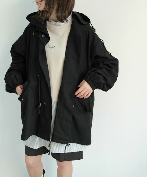 ナチュラルな風合いが魅力のスノーパーカー。 古着のスノーパーカーをモチーフにデザインし、ヴィンテージライクな雰囲気に。 ウエストに施したドロストデザインで立体的なフォルムとリラクシーな着心地を演出してくれます。 フードはボタンで簡単に取り外しできるのも嬉しいポイント◎ オーバーサイズなのでニット等の厚手のトップスが着やすいのも魅力的。 デニムやハーフパンツ等のカジュアルなアイテムにはもちろん、 ロングスカートとのきれいめなアイテムにも、ミドル丈なので合わせるアイテムを選ばすに相性良く着ていただけます。 ヒップラインがすっぽりと隠れる丈感で体型カバーにも◎ ドローコードでシルエットに変化をつけてすっきりとした印象に。 袖口はゴム仕様で腕を捲った着こなしも楽しめます。 ナチュラルな肌触りのコットン100%。 薄手で軽く羽織れるので季節の変わり目に活躍の1枚です。