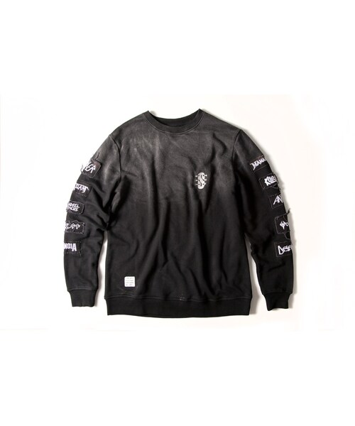 將大學衫這類運動型的單品施以破損、洗舊、髒污加工技術製作出了這款瘋狂作品兩袖綴滿了樂團風格布章粗糙的質感頗具手工氛圍大身極度誇張的退色效果散發彷彿著用十數年的陳舊感衣長 01(M)69 02(L)70 03(XL)71肩寬 01(M)43 02(L)45.5 03(XL)48胸圍 01(M)53 02(L)55.5 03(XL)58袖長 01(M)61 02(L)63 03(XL)65*尺寸皆為平放丈量,單位為cm