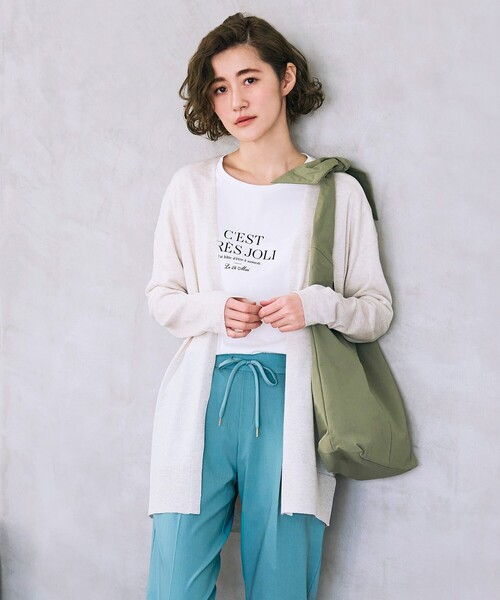 洗える!着回し◎!レビータミドル丈カーディガン 【デザイン】 フロントはややVネックに仕上げており、スッキリした印象です。 身幅はゆとりがありながらきちんと感もありキレイ目なスタイルにもあうように仕上げております。 ヒップが隠れるミドル丈で体系カバーをしながらキレイめにもカジュアルにもオシャレを楽しめる着丈です。 袖口はパフ袖に仕上げておりすっきりした中にも優しい印象を与えてくれます。 【素材】 柔らかく涼やかな素材です。厚手すぎず薄すぎずでしあげております。 糸には光沢感があり華やかに見せてくれます。 ニット製品ですがご自宅の洗濯機洗いができるのでお手入れも簡単です。 ※こちらの商品は透け感があります。 モデル情報:身長166cm B80 W59 H86 着用サイズ:02(M) 店舗へのお問い合わせ商品番号:768-36002 ●製品寸法: 01(S):着丈69cm B96cm 袖丈44cm 肩幅47cm 02(M):着丈71cm B99cm 袖丈45cm 肩幅48cm 03(L):着丈73cm B102cm 袖丈46cm 肩幅50cm 04(LL):着丈76cm B106cm 袖丈47cm 肩幅52cm 05(3L):着丈79cm B110cm 袖丈47cm 肩幅54cm 備考: