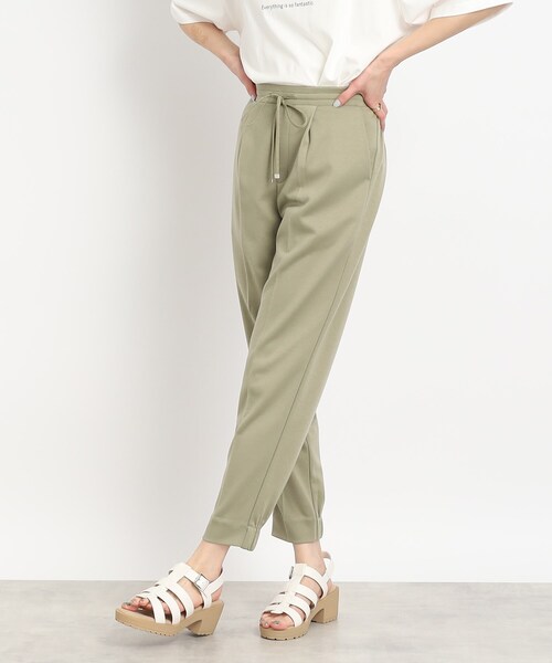 ラクに着られるストレッチ ジョガーパンツ! 【デザイン】 スッキリシルエットのジョガーパンツをの前にピンタックを入れ、キレイ目に仕上げました。 スッキリさせているので細く見え、かつウエストゴム・ストレッチ素材・裾ゴム仕様なので楽に穿いて頂けるオススメのパンツです。 ※ポケット数:前×2 【素材】 ストレッチのあるジャージ素材 ※裏地なし モデル情報:身長167cm B78 W62 H88 着用サイズ:02(M) 店舗へのお問い合わせ商品番号:741-66014 ●製品寸法: 02(M):W~82cm H90cm 股下65cm 前股上29cm 渡り幅31cm 裾幅14cm 03(L):W~84cm H92cm 股下66cm 前股上31cm 渡り幅32cm 裾幅15cm 備考: