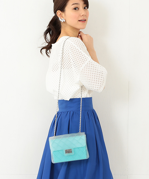 女子度をぐっと格上げしてくれるコンパクトなショルダーバッグは人気継続!キルティングデザインに透ける素材が新鮮。夏のコーディネートにも映える、ピンクとグリーンが優しく透けるデザインです。 PVC素材だから水にも強く、少々の雨ならへっちゃら。さっと拭いてお手入れも簡単。中のカラーパーツは取り外すことができ、シンプルな透け感のあるバッグにも変身します。 ぜひシンプルコーデのアクセントや夏のリゾートコーデに合わせてお楽しみ下さい。 DESIGN INVERSO / デザインインヴェルソ 2009年にイタリアでスタート。2010年に自身がデザインしたP.V.C.シューズのコレクションを発表。すぐにイタリアの有名ショップやデザイナー、ジャーナリストの目に留まり、今後期待のブランドに成長している。 店舗へお問い合わせの際は下記品番をお伝えください。 品番:73-61-0968-554 ※店舗入荷のタイミングと異なる場合がございます。 予めご了承の程お願いいたします。