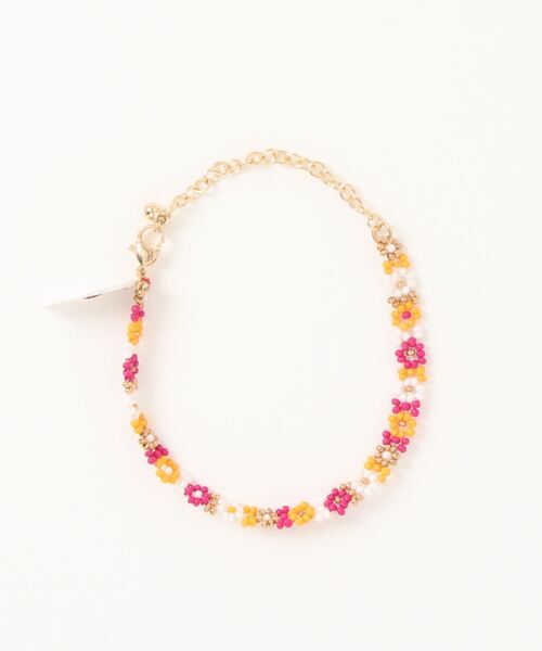 レトロヒッピーなフラワービーズのブレスレット。手元をカラフルに明るく華やかに彩ります。他のブレスレットとの重ね着けもおすすめです◎ ・アジャスター付きで長さ調節可能。 ※こちらの商品は1点1点職人による手作りとなります。その為、形や色合いなど若干異なる場合がございます。あらかじめご了承ください。※屋外での撮影画像は、光の当たり具合で色味・カラーが違って見える場合がございます。商品のカラーは、スタジオ撮影の画像をご参照ください。 <価格改定のお知らせ> 2024年11月12日より、素材費高騰の諸事情により価格改定をさせて頂きます。 商品タグに記載している価格につきまして、旧価格のものが混在している場合がございます。 ご了承くださいますよう、お願い申し上げます。 Amina Collection Co.,LTD.