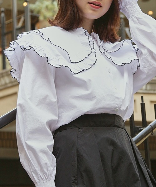 大きな2枚衿のボリューム感が可愛いブラウス 〖Design〗 ・大きな2枚の衿のボリューム感で首元を華やかに ・淵のバイカラーでえりの形がしっかりわかる ・春に着たいキャミワンピースとの相性抜群◎ ・カジュアルにもガーリーにもコーディネートできる万能アイテム 〖Styling〗 衿のボリューム感がポイントのブラウスは 1枚で着てもカーディガンの上から衿を出してもかわいいアイテムです! 無地の生地を使用しているので柄のボトムスにも合わせやすく着回しにはぴったりのブラウスです◎ ---------------------------------------------- 透け感: あり 裏地: なし 伸縮性: なし 光沢感: なし 生地の厚さ:普通 ---------------------------------------------- ●商品のお気に入り登録 ♡をクリック! 完売カラーの再入荷や残り1点の通知、お得なタイムセール通知も受け取ることができます。 ●ブランドのお気に入り 登録新商品や再入荷、セール、クーポン配布などお得な情報をいち早くお知らせします。 ぜひご登録下さい! ※画像の商品はサンプルです。 実際の商品と仕様・加工・サイズが若干異なる場合がございます。予めご了承くださいませ。 ※撮影場所やお使いのモニター環境により若干お色味が異なる場合がございます。 ※製品によっては染料の特性上、湿った状態や汗をかいた状態での長時間の放置、または摩擦により、他のものへ色移りする恐れがありますので、着用時にはご注意下さい。 ※風通しがよく、湿気の少ない日の当たらない場所で保管して下さい。 ※また製品加工上、お手元に届く際に匂いが生じる場合がありますが、 ご使用を続けていく事により匂いは軽減されます。