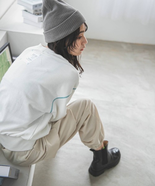 ステッチの差し色&バックワッペンがアクセントに1枚でさまになるスウェットトレーナー【Design】ボリュームのある袖と短すぎないショート丈の着やすいスウェット。シンプルなシルエットながら、配色ステッチやバックワッペンがアクセントに。着やすさ抜群、1枚でさまになるので持っておくと重宝します。ペタッとしないよう、袖のボリュームや裾のボリュームで立体的なシルエットを出し、着やせ効果も。生地端のリブでメリハリのある表情を演出◎リラックスムード漂うデイリーに着やすいスウェットに仕上げました。【Material】裏毛素材なので、秋冬〜春にかけて、長くご着用いただけます。程よいボリュームが出るので、シルエットを最大限に活かしてくれます。ボリューム感もちょうど良くアウターの中に着ても、1枚で着ても○【Coordinate】ワイドパンツと合わせて、メリハリスタイルも○デニムと合わせてカジュアルスタイルも○色々なコーディネートが楽しめます。パンツスタイルだけではなく同素材のマーメイドスカート(533198)と合わせてセットアップでの着用がオススメ。デイリー使いはもちろんですが、おうち時間のスタイリングとしても大活躍間違いなし。※ご覧のモニター環境により、画像の色味と多少異なる場合がございます。-----------------------------透け感:ややあり(ホワイトのみ)生地の厚さ :普通伸縮性 : あり裏地:なし光沢:なし洗濯:手洗い推奨-----------------------------※詳しいお手入れ方法は商品タグをご参照ください。【お買い物をよりお楽しみいただく為に】▼商品のお気に入り登録をおすすめします♡をクリックしてください。完売カラーの再入荷や、ラスト1点の通知、セールの際の通知を受ける事ができます。ブランドのお気に入り登録もご一緒にお願い致します。
