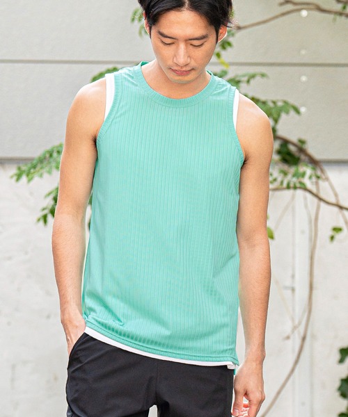 Height:181 Chest:93 Waist:70 Hips:95 Shoes:28 のモデルが4(L)サイズを着用。 着心地だけじゃない。 日常をアップデートするタンクトップ。 ●レイヤード着用でコーディネートにアクセント ●ウエストイン着用もインナーが出る心配無し ●凹凸のあるテレコ素材で通気性◎ ●吸湿速乾でいつでもサラッと ●毛羽立ちしにくい素材でヘタれにくい