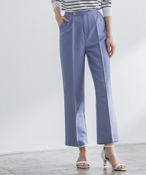 さりげないワンポイントに“ボタンデザインタックパンツ” 落ち感があり滑らかな肌触りのレーヨン混素材。程良く厚みがあり大人っぽいシルエットへと導きます。 透け感(淡色):若干あり 透け感(濃色):なし 伸縮性:あり 裏地:オフホワイトのみあり ポケット:あり(バックポケットはフェイク) ファスナー:あり オフホワイトに若干透け感が生じます。 ウエストのゴールドボタンがワンポイントになったタックパンツ。INスタイルに程良くアクセントをプラスしてくれます。ウエスト部分にタックを入れ、細すぎないテーパードラインに仕上げました。ON/OFF着まわすことができ、同素材のジレとセットで着用するとトレンドスタイルに◎ ※商品画像は着用イメージです。光や角度により、実物と色味が異なる場合がございます。 また表示のサイズ感も実物とは若干異なる場合もございますので、予めご了承ください。 【ブランド】 marvelous by Pierrot(マーベラスバイピエロ) 【お買い物を楽しむための方法】 **商品のお気に入り登録** カートボタン横の♡をクリック! 気になるアイテムが完売しても再入荷のお知らせ通知や、在庫ラスト1点の通知、セールの通知が届きます。 **ブランドのお気に入り登録** ブランドトップページの「♡お気に入りブランドに追加」をクリック! 新商品や再入荷など、クーポン配布などのお得な情報を受け取ることができます。 洗濯:洗濯可(ネット使用)