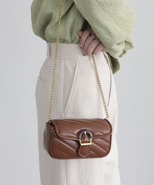 ◇fredy emue◇ 【2023 SS】 大人っぽさを演出するキルティングバッグ ●point ・程よく艶感のあるキルティングとレトロ感のある金具使いがポイントのショルダーバッグ ・コンパクトなのにマチがあり、小ぶりなサイズ感ながらも収納力抜群! ・大きめのバックルデザインとやや横長のフォルムがポイント ・普段使いからオケージョンまで幅広いシーンで活躍するアイテムです ●お取扱い上のご注意● *商品を長くご愛用していただきたいため、アテンションタグがある場合は必ずご確認の上、着用又はお取り扱い下さい。 *店頭及び屋外での撮影画像は、光の当たり具合で色味が違って見える場合があります。商品の色味は、スタジオ撮影の画像をご参照下さい。 *商品画像に関しては出来る限り忠実に表示出来るよう努めておりますが、お客様がご利用のモニターの設定及び特性により、実際の商品と比較し色味に若干の誤差が生じる場合があります。 *画像の商品はサンプルとなりますので実際の商品と仕様、加工、サイズが若干異なる場合がございます。 ◇商品のお気に入り登録◇ 【お気に入りに登録 ♡マークをクリック】を是非ご活用ください! 再入荷の通知や、ラスト1点の通知、セールの通知がいち早く届きます。 ◇ブランドのお気に入り登録◇ 新商品や再入荷など、いち早くブランドのお得情報が届きます。