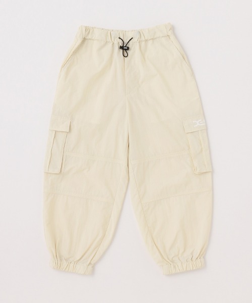 軽量で動きやすいカーゴロングパンツです。 裾ゴムでボリュームシルエットを作った、昨年からトレンドのアイテム。ナイロン素材のため丈夫でハリがあり、スポーツ・ダンスシーンにも相性抜群です。内側にはお名前を記入できるタグつき。【おすすめの着用時期は春夏シーズン】【透け感】透けない【生地の厚さ】薄い【伸縮性】あり【裏地】なし【ポケット】あり【アジャスター】あり