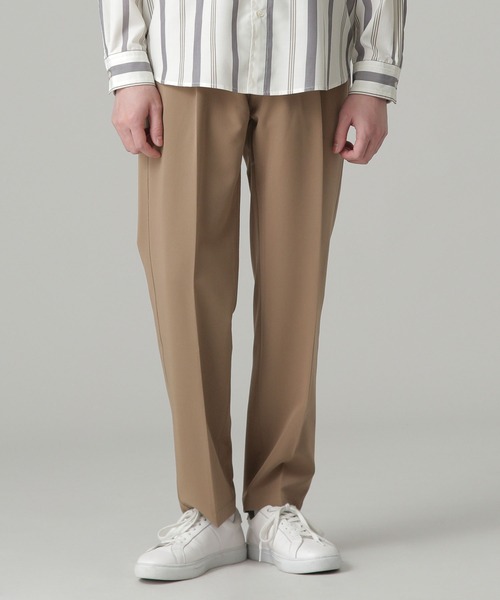 NANO universe(ナノ・ユニバース) LB.04 『TR素材を使用した上品見えのスラックス』タック入りで裾に向かってテーパードがかっており、綺麗なシルエットのリラックスパンツに仕上がっています。 合わせるアイテム次第で異なる雰囲気のスタイリングをお楽しみいただけます。 ーDETAILー ・綺麗なシルエットのテーパードパンツ ・様々なスタイルを楽しめる抜群の着回し力 ーFABRICー ・カジュアルになりすぎない上品見えTR素材を使用 ■取扱方法 蛍光増白剤が入っていない洗剤を使用してください。色物(特に濃色)と白物・淡色物は分けて洗ってください。濡れたままの放置や、長時間の浸漬はしないでください。形をととのえてから干してください。あて布を使用してください。こちらの商品は水や雨に濡れたり、汗による湿気、乾燥状態での摩擦により、薄い色の衣服などに色移りする可能性がございます。洗濯の際は、他のものと分けて洗ってください。濡れた状態で他の洗濯物と一緒に重ね合わせないでください。強く擦ったりつまみ洗いをすると、白化や毛羽立つことがあります。 ▼商品のお気に入り登録 お気に入りアイテムの再入荷や残り1点の通知を受け取ることができます。 ▼ブランドのお気に入り登録 新作アイテムの入荷や人気アイテムの再入荷、タイムセールやクーポンなど、 いち早くブランドのお得な情報を受け取ることができます。 ※サンプルにて撮影、採寸を行う為、実際にお届けする商品と仕様やサイズが異なる場合がございます。予約時は生産の都合上、お届け予定時期が前後する場合もございますので、予めご了承下さい。