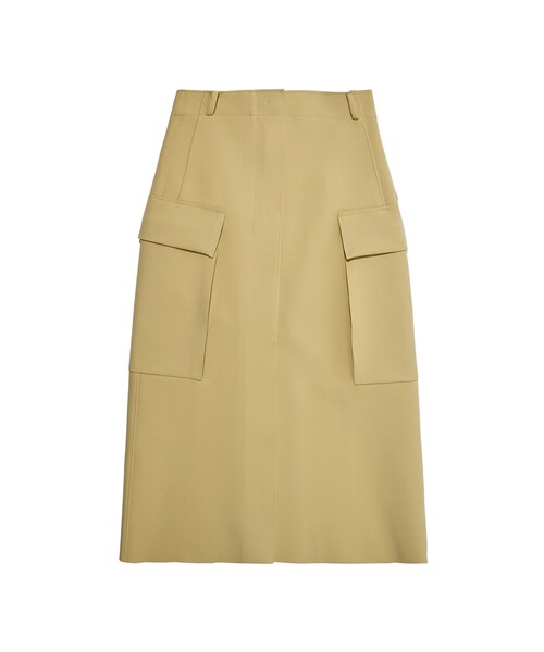 【DESCRIPTION】 ポリエステルストレッチ生地を使用したエレガントなフォルムのハイウエストスカートに、機能的な大型フラップポケットを加え、デザイン性と機能性を両立。 【MATERIAL】 ポリエステル90% ポリウレタン10%