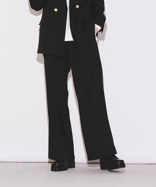 高級感と上品な印象で春スタイルを彩ります 【素材】 ポリエステルでありながらツィード風の素材になっております。 スッキリとした表面感で着用しやすい肉感になっております。 【デザイン】 腰回りから裾にかけて少しだけ広がるワイドフレアシルエットパンツ。 足長効果が期待できるアイテムです。 フロント中央にはワンタックとセンタープレスが入っており上品なシルエットを表現し、野暮ったさのないように調整しました。 【スタイリング】 スプリングツイードジャケット(商品番号170-46001)とのセットアップがオススメです。 トップスはタイト、ボトムスはワイドの全体バランスがトレンドです。 単品使いとしても活用しやすく、素材が特徴的なのでスタイリングに奥行きが出ます。 ※ポケット数:横×2、後ろ×2 【推奨サイズ】 01サイズ(S):160~170cm 02サイズ(M):165~175cm 03サイズ(L):170~180cm ※標準体型を基にした目安になります。 - BRAND CONCEPT - 時代を超えて支持されるトラディショナルなアイテムをベースに、アソビ心とストリートの自由な発想を取り入れ、日本独自のミックススタイルを提案します。 【気になる商品はお気に入り登録をおススメ】 ▼商品のお気に入り登録 完売しているカラーの再入荷通知や、ラスト1点、セールの通知をお知らせいたします。 ▼ブランドのお気に入り登録 新商品や再入荷など、いち早くブランドの情報を受け取ることができます。 こちらの商品は主に春に着用いただける商品です。 モデル情報:身長181cm B80 W75 H90 着用サイズ:03(L) 店舗へのお問い合わせ商品番号:170-76001 ●製品寸法: 01(S):W70~81cm H104cm 股下70cm 前股上29cm 渡り幅35cm 裾幅29cm 02(M):W74~85cm H108cm 股下71cm 前股上29cm 渡り幅36cm 裾幅30cm 03(L):W78~89cm H112cm 股下73cm 前股上30cm 渡り幅37cm 裾幅30cm 備考: