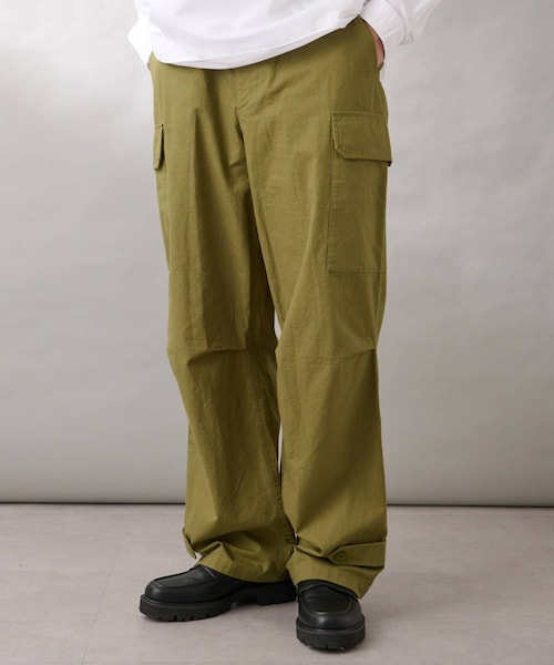 リップストップ生地を使ったカーゴパンツです。実際にフランス軍で使われていたM-47のデザインをベースに、街でも着やすいデザインにアップデートしました。カーゴポケット脇にピスネームを付けたデザイン。カーゴパンツらしいゆとりのあるシルエットです。裾に付いているタブで裾幅を調整して着るのがおすすめです。・・・・・・・・・・・・・・・・・・・・・・透け感:なし裏地:なし伸縮性:なし光沢感:なし生地の厚さ:普通洗濯のしかた:液温は40℃を限度とし、洗濯機で非常に弱い洗濯ができる・・・・・・・・・・・・・・・・・・・・・・【GEVACO / ゲバコ】 1960年代にベルギーにて創業した老舗ワークウエアメーカー。馬がオーバーオールを着た可愛いブランドアイコンと、馬に引っ張られても破けないワークウェアを製造するメーカーとして有名になりました。創業当初はその丈夫さを買われ、ベルギー軍用の軍服として採用された実績があります。本国では1990年代にブランドは消滅しました。2021年、当時のブランドとの繋がりはありませんが、日本にて過去のデザイン・ディティールを参照し、現代風にアレンジした新たな“GEVACO”としてスタートしました。(商願2020-44488)ブランド品番:6042M※画像の商品はサンプルです。 実際の商品と仕様、加工、サイズ、素材が若干異なる場合がございます。▼気になる商品を登録ハートをクリックして《お気に入り登録》がオススメです!セール情報や完売カラーの再入荷通知、ラスト1点の通知などを受け取ることができます!▼ブランド新商品や再入荷など、ブランド情報をいち早く受け取ることができます!