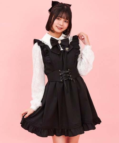 ジャンパースカートを重ね着したようなデザインがポイント!透け感のある袖のレースが爽やかな印象に♪ 取り外しができる胸元のリボンには、ビジューやSH刺繍を合わせて細部まで抜かりなく☆ ウエストのコルセット風デザインがメリハリのあるシルエットを演出してくれます♪ ♡Secret Honey♡(シークレットハニー) レトロガーリーなテイストにトレンドを取り入れ、キュートな中にも少しだけ大人な感覚を表現。 シルエットや気やすさの追求と、繊細で凝ったデザイン・ディティールへのこだわりを持ちつつ、リーズナブルな価格で展開します。 ★お気に入り登録してSecret Honey(シーハニ)の最新情報を手に入れよう★ ・「商品のお気に入り登録」で再入荷や、在庫ラスト1点、セールなどの通知を受け取ることができます。 ・「ブランドのお気に入り登録」で新商品や再入荷など、最新情報を受け取ることができます。