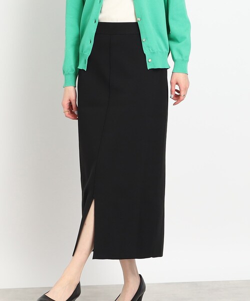 前後2WAYナロースカート! 【デザイン】 前後2WAYで着用出来るナロースカートです。 スッキリと綺麗なシルエットが大人っぽい印象です。 スリット上のセンターにタックを入れることで縦見え、かつ前後でスタイリングの雰囲気を変えられるデザインです。 ※ポケットなし 【素材】 大人気のスポンディッシュ生地で仕上げた、ソフトタッチな風合い。 ※裏地なし ※741‐16013の050(ナチュラル)・092(ブルー)・019(ブラック)カラーは同素材、同色になりますのでセットアップで着て頂けます。 モデル情報:身長167cm B78 W62 H88 着用サイズ:02(M) 店舗へのお問い合わせ商品番号:741-76016 ●製品寸法: 02(M):W68~82cm H88cm 総丈86cm 03(L):W71~85cm H93cm 総丈87cm 04(LL):W74~88cm H98cm 総丈89cm 備考: