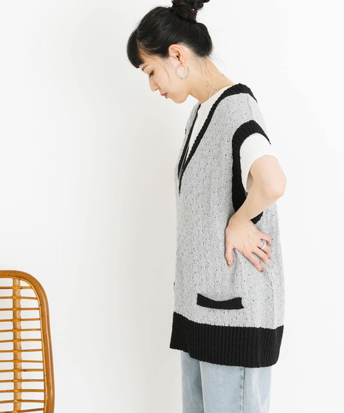 【カラーをMIXした1枚で主役級になるニットベスト】配色がポイントになった、深Vネックのニットベストが登場。更にさりげなく柄編みになってこなれた感じで着まわしていただけます。POINT・表面感が楽しめるループヤーン使用・重ねやすいオーバーサイズCOORDINATE定番で使えるベストはシャツやカットソーはもちろんワンピースに合わせても〇様々なアイテムとのレイヤードスタイルをお楽しみいただけます。UR Lab.アーバンリサーチラボ素直に「今すぐ着たい」「気分が上がる」をコンセプトに年齢に囚われず、自分らしさ、好きなものを追求し、研究・提案するレーベル。※商品画像は、光の当たり具合やパソコンなどの閲覧環境により、実際の色味と異なって見える場合がございます。予めご了承ください。※商品の色味の目安は、商品単体の画像をご参照ください。▼お気に入り登録のおすすめ▼お気に入り登録商品は、マイページにて現在の価格情報や在庫状況の確認が可能です。お買い物リストの管理に是非ご利用ください。-----------------------------透け感:なし伸縮性:あり裏地:なし光沢:なしポケット:なし-----------------------------