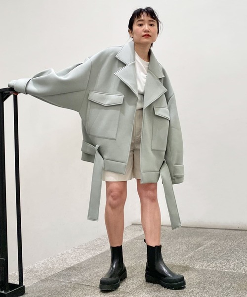 【ダンボール素材のオーバージャケット】特徴的なダンボール素材はふわふわ、もちもちとして生地自体に厚みがあり、とても軽いので、肌触り、着心地抜群の一枚です!着用時の袖のボリューム感が出るように、タックを入れたり、全体的に丸みのあるシルエットがでるように、素材選びからかなりこだわりました。存在感のあるビックカラーとサイドから手を入れることができる大容量ポケットもポイントで、ジャケットに手を入れて歩くのを想像してデザインしました!裾についたベルトは、着用時の躍動感があるように、あえて垂らして着るようなデザインにし、後ろ側のベルトループにボタンをつけており、紐が抜けない仕様にしました!POINT・メンズの方も着れるオーバーサイズ・着心地抜群のダンボール素材・取り外し可能なベルトCOORDINATEミドル丈なので、ショートパンツやロングパンツ、スカートまで幅広く合わせて頂けます!どちらのカラーも、個人的に同系色のパンツと中はシンプルなカットソーで思いっきりモノトーンスタイルを楽しんで頂きたいです♪【COULEUR MELER(クルールメリー)】COULEUR MELER(クルールメリー)はフランス語で”色が混ざり合う”という意味です。色(個性)を持ったディレクターたちが作るオリジナルアイテムを展開しています。※この商品は、モノフィラメント糸を使用しています。糸の特性上、ザラザラした肌触りがあり、肌に触れますと赤くなる場合があります。特に肌の弱い方や汗をかきますと顕著になります。直接肌には着用せず、下に1枚着用することをおすすめします。総重量 : 約1125g※商品画像は、光の当たり具合やパソコンなどの閲覧環境により、実際の色味と異なって見える場合がございます。予めご了承ください。※商品の色味の目安は、商品単体の画像をご参照ください。▼お気に入り登録のおすすめ▼お気に入り登録商品は、マイページにて現在の価格情報や在庫状況の確認が可能です。お買い物リストの管理に是非ご利用ください。-----------------------------透け感:なし伸縮性:あり裏地:なし光沢:なしポケット:あり-----------------------------