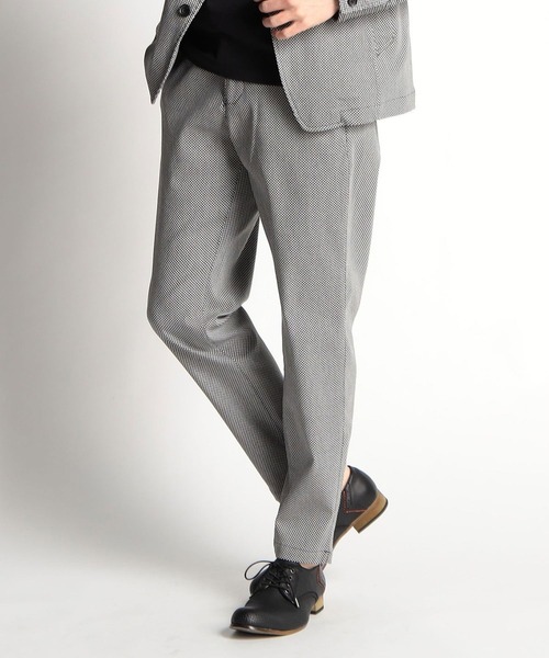 吸湿性の高い再生繊維のレーヨン糸と、プリッとしたコシを出すナイロンを使用したハイパーストレッチ素材を採用。後ろベルトに平ゴムを入れたスラックスタイプのパンツを展開します。しっかりとしたハリがありながら、ポリウレタン混により良く伸びるストレッチ性とキックバックが利いた素材感が特長。合繊特有の上品な光沢感も兼ね備えています。タテヨコの糸の色を配色にする事で色合いに奥行を出しているのも魅力の素材です。<br>※<3165-3501>同素材のジャケットも展開しております。