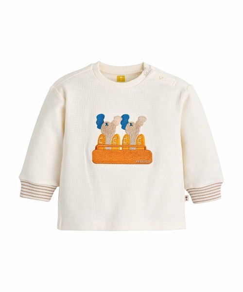 プリントがポイントのジャカードスウェット。季節の変わり目に使いやすい素材感で、マルチコーデしやすいアイテムです。* カタログ商品注意)サイズによって仕様が変わりますので予めご了承ください。 90/→肩開き 100/110/120→開き無し洗濯方法:手洗い