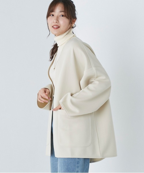 カジュアルライクなデザインで気軽に羽織れるライトアウター。フロントに留め具のないトッパータイプでラフに使用していただける一枚。ノーカラーでシンプルなデザインはコーディネートの邪魔をしません。しわになりにくく、もちもちとしたポンチ素材がきれい目にも◎軽い着心地なところも一日をストレスフリーで過ごせる魅力的アイテム。緩めのサイジングなのも抜け感があって良し、日常をちょっと贅沢にした一着です。【完売カラー♥クリックのススメ】随時、入庫はしていますが人気のため完売しやすくなっています!!お気に入り登録の♥をクリックしていただくと通知がきて、すぐにご購入いただけます!あとは商品が届くのを待つだけ♪ぜひご登録ください♥【ブランドのお気に入り登録♥ススメ】新商品や再入荷など、最新情報・お得情報をいち早くお知らせします!ぜひご登録ください♥