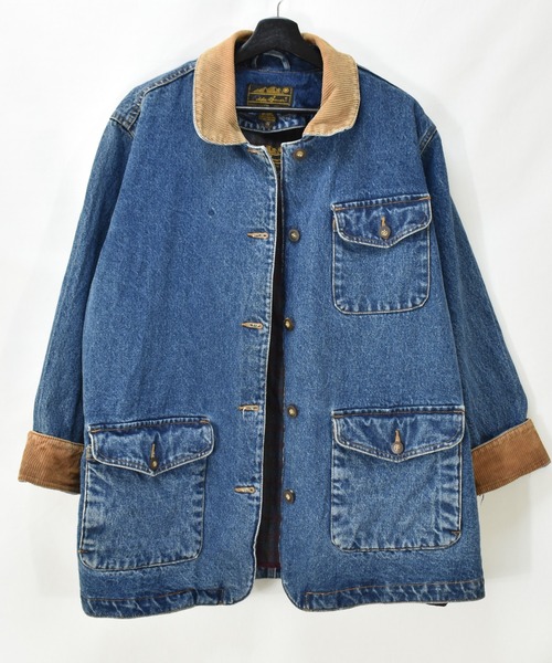 -素材の特徴-・しっかりとしたデニム生地 ・柔らかく温かなフリースベストライナー付き -デザインの特徴- ・Eddie Bauerのデニムチョアコート ・濃い色味のブルーデニム ・袖、襟はキャメルのコーデュロイ襟 ・ハンドポケット有り ・ボタン留め ・着脱可能なフリースベストライナー付き ・Mサイズ表記 -スタッフコメント- Eddie Bauerのデニムチョアコート。 ライナー付きのグッドコンディション。 大きく目立つダメージ等はありません。 秋~春まで長いシーズン着られるかと思います。 -状態- 着用感,色褪せ,スレ,シミ,キズ,毛玉 ーーーーーーーーーーーーーーーーーーーーーーーーーーーーーー こちらはヴィンテージ商品のため1点ものです。 交換・修理はいたしかねます。 ヴィンテージ商品につき、どちらの商品にもシミ・ダメージ・使用感が多少ございます。 このようなヴィンテージ商品の性質を十分ご理解いただいた上で、ご注文くださいますようお願いいたします。 商品状態につきましては詳細にお伝えするよう努めておりますが、細かな点の表記には限りがございます。 画像につきましても、実商品の色味に近しいものを掲載するよう心がけておりますが屋内での撮影のため、多少の誤差が生じる場合がございます。 どうかご理解いただけますようお願いいたします。 ーーーーーーーーーーーーーーーーーーーーーーーーーーーーーー