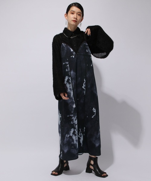 ーーーHAREらしい総柄がポイントのキャミワンピース。ーーーニュアンス感のある柄デザインで作成し、モードなキャミワンピースに仕上げました。さらっとした生地感で、春夏に着心地の良いアイテムです。Iラインで細身に見えるように作成し、広がらないスラっと見えるシルエットの為、スタイルアップ効果も抜群です。肩紐は長さの調節が可能なため、ご自身の身長に合わせてなく着用して頂けます。春にはシャツやカットソーとのレイヤードスタイルで、夏にはタンクトップなどを合わせた涼しげなスタイリングがおすすめです◎※撮影環境により、光の当たり具合で 色味が違って見える場合があります。 あらかじめご了承下さい。