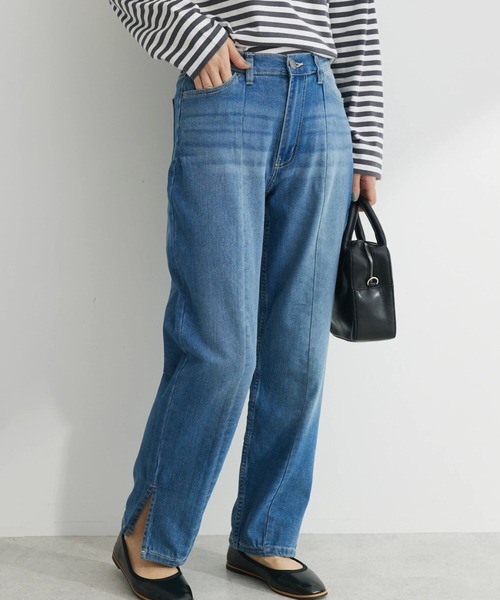 驚きの柔らかさ!GUMストレッチデニム ストレートシルエットが脚のラインを適度にカバーしてくれるパンツ。 バックウエストはゴム仕様になっており、楽な着心地を実現します。 サイドスリットが施され、さりげなく抜け感を演出◎ スタイリングに取り入れやすいデニム地は、ワードローブに揃えておきたいアイテムです。 透け感[無し] 裏地[無し] 伸縮性[やや有り] 光沢感[無し] 生地の厚さ[普通] 付属品[無し] ポケット[有り]前2つ 後2つ ●製品寸法: M:ウエスト65 ヒップ94 総丈92 股下68 わたり周り29 裾幅34 L:ウエスト68 ヒップ97 総丈94.5 股下70 わたり周り30 裾幅36.5 備考: