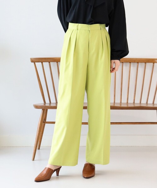 1本は持っていたい!■デザイン2タックでトレンド感のあるストレートワイドパンツ。やや緩めのシルエットと前後のセンタープレスが、履き心地の良さとスタイルアップを叶えます。旬な雰囲気のオレンジ味のあるピンク、ライムカラーがコーディネートを彩ります。カジュアルスタイルからオフィスシーンまで幅広く活躍する1本です。■サイズ太すぎないシルエット。ウエスト周りはあえてゴム仕様ではなく、タックインした際もすっきりと着用していただけます。■素材やや光沢のある生地が上品な印象をプラス。■ケア方法洗濯可【BROWN】BEAMS STAFF:H155 Size:1【PINK】BEAMS STAFF:H161 Size:1【LIME】Model:H166 B76 W54 H85 Size:1生地の厚さ:普通透け感:なし伸縮性:なし光沢感:なし裏地:あり【スタッフレビュー】スタッフ:松本 佳菜子身長:163cm / 普段サイズ:M / 着用サイズ:0サイズ感: ウェストはスッキリ、腰回りはゆったり素材感: サラッとしていて、やや張りがある素材感ポイント: 綺麗めにもカジュアルにも使える万能パンツ。春カラーで程よいワイドなシルエットがかわいい。※光の当たり具合やパソコンなどの閲覧環境によって、実際の色味と異なって見える場合がございます。予めご了承ください。※商品の色味は商品単体で撮影した画像をご参照ください。