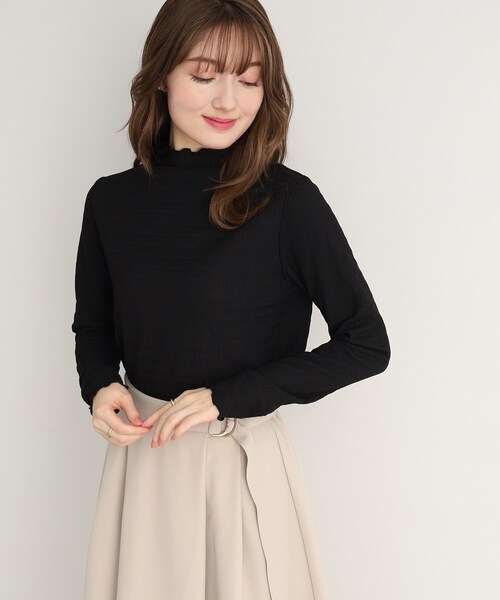シアーのハイネックプルオーバー!【デザイン】ハイネックデザインなのでインナーとして首元だけ出したレイヤードスタイルもおすすめです。パイピング部分はフェミニンなメローデザイン。【素材】しぼ感のある柔らかく伸縮性のある素材。シアー感有り。※こちらの商品はやや透け感があるため、インナーの着用をおすすめします。モデル情報:身長163cm B81 W56 H82 着用サイズ:02(M)店舗へのお問い合わせ商品番号:741-16310●製品寸法:02(M):着丈61cm B90cm 袖丈59cm 肩幅35cm03(L):着丈63cm B93cm 袖丈60cm 肩幅36cm備考: