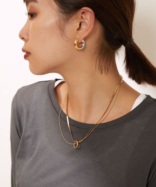 【2023 Spring & Summer 】 esne 華奢なデザインながら目を引くマルチWAYデザインネックレス ●素材 腐食や熱などにも強く、長く着用していても老朽化しにくいサージカルステンレスを使用。 また、耐久性も高く、傷つきにくいので、長く愛用して頂けます。 ●シルエット 幅広で光沢感があるネックレスと、華奢なスネークチェーンネックレス3本セットのデザイン。 其々別でも使用出来るので、お手持ちのアクセサリーと合わせたり、 様々な楽しみ方が出来るアイテムです。 幅広デザインのネックレスは光沢感があるので、顔周りを華やかに見せてくれます。 ●こだわり 子供にとって欠かせないmilkのように大人の女性にとって欠かせないアクセサリー。 肌に優しいサージカルステンレスや10Kを使用。 我慢せずおしゃれを楽しんでいただきたいという思いから作りました。 ********************** 商品のサイズ感、素材感などのご質問は、Instagram DMにてご連絡くださいませ。 ■instagram:@aresense_official ********************** ※掲載画像の商品の色味は、屋外や屋内の光の照射や角度により実物と色味が異なる場合がございます。また表示のサイズ感と実物は若干異なる場合もございますので、予めご了承ください。 ※着用、お取り扱いの際は、商品についている品質表示とアテンションタグを必ずご確認下さい。 【Aresense/アーセンス】 ”Aresense”は、「Make sense(理にかなう)」を意味するラテン古語を由来とする言葉。 「心地のよさ」を大切に、機能性とホームケアに配慮したコンフォートアイテムと洗練されたスタイリングで、自分らしい美しさを提案します。 【esne/エスネ】 “esne(エスネ)“= milkを意味する言葉。 生まれてまもない子供にとって欠かせないミルクのように、 スタイリングの仕上げに欠かせないアクセサリー。 10K(10金)、ラボグロウンダイヤモンド、 サージカルステンレスから構成されるノンアレルギー素材で、 どんなスタイルにも寄り添うシンプルでミニマルなデザインです。