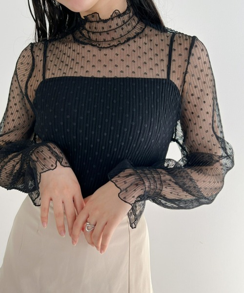 首元と袖口の程よいボリューム感が今っぽい◎ レイヤードにもぴったりなドットプリーツのシアートップス ▼ポイント ドット柄のプリーツチュールとシアー感が大人可愛いシースルー素材トップス♡ トップスとして単体ではもちろん、インナーとしても使えるのでロングシーズン大活躍してくれます。 襟のメロウや袖のフレアなシルエットがスタイリングに華やかさをプラスしてくれ、いつものコーデもお洒落感アップに◎ シンプルながらディティールにこだわっており、着回し力も抜群な今マストな1枚です♪ ▼スタイリング キャミワンピースやジャンスカのインナーに合わせてガーリーなコーデから、スウェットやパーカーのインナーとして韓国っぽコーデまで、幅広いテイストのレイヤードに活躍してくれる1枚。 中にキャミソールを合わせてトップスとして着るのはもちろん、カジュアルコーデに女の子らしさをプラスするのに使うのもオススメです♪ 程よい透け感なので卒業パーティーやお呼ばれ等のドレスやジャケットのインナーとしても◎ いつものコーデからオケージョンまで幅広いシーンで使える、ワードローブで大活躍するアイテムです♡ 【Loueme...♡】 ”Loulou”(可愛い子) + "bohéme"(自由奔放) 造語から”Louéme(ルエム)”が誕生しました。 自由気ままに、おしゃれを楽しみ 自分のため、大切な誰かのために いつだってかわいくいたい女の子のためのブランドです。 ※ご覧のモニター・撮影環境により実際の商品と多少色味が異なって見える場合がございます。 予めご了承をお願いいたします。 ~お買い物をよりお楽しみいただく為に~ ▼”商品”のお気に入り登録 →ハートをクリック! 完売カラーの再入荷や、ラスト1点の通知、セールの際の通知を受ける事ができます♡ ▼”ブランド”のお気に入り登録 新商品や再入荷など、いち早くブランドのお得な情報を受け取ることができます♡ ※他のキャンペーンにより、期間中に価格が変動する場合があります。 ※セールは予告なく終了させていただく場合もあります。