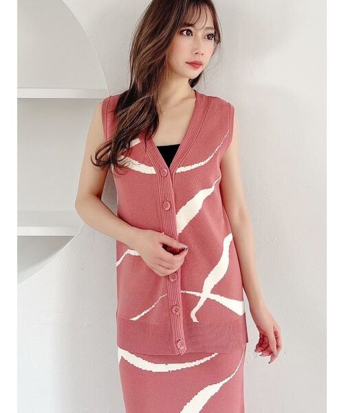 ニュアンス柄が今年らしいニットベスト ▽デザイン▽ ランダムなニュアンス柄をジャガードニットで表現しました♪ あえて長めのサイジングにしたことでルーズな抜け感を演出。 首回りは深めのVネックでスッキリと見せたことで女性らしさもプラス。 サラッと着るだけで一気に今年らしさを取り入れられる1枚です。 ▽カラー▽ 柄物でも取り入れやすい黒と、 一気に華やかになるイエロー・ピンクの3色展開。 これから夏にかけては明るいカラーを取り入れるのもオススメ◎ ▽スタイリング▽ ニュアンスパターンニットタイトスカートとセットアップになります。 夏には1枚でトップスとして着るのはもちろんですが、 ブラウスやシャツに合わせてベストとしても着れる着回し抜群アイテム。 タイ付きブラウスなどをレイヤードすることでキレイめ感をプラスでき、 トレンド感も出るのでオススメ◎ ▽シーン▽ デイリーはもちろん、華やかなカラーアイテムは リゾートシーンなど特別なシーンにもオススメ!