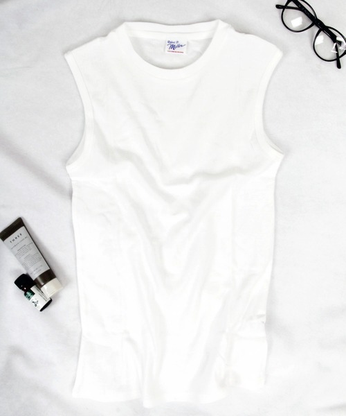 夏に大活躍なタンクトップ <デザイン> しっかりとした素材で、透け感も気にならない。 アームホールも広すぎないデザインになっているので、袖口からインナーが見える心配もなし。 肩の部分が少し長めに作られていて、二の腕が細見えするデザインになっています。 ゆったりとしたシルエットで、さらっと着こなしていただけます。 ジョガーパンツやイージーパンツ、ハーフパンツ、デニムはもちろん◎ 女性の方はキャミソールワンピースの下に合わせたり、プリーツスカート、フレアスカートに合わせるのも◎ 1枚で着るのも良し、インナーとしても活躍間違いなしのアイテムです。 シンプルなデザインでコーディネートの邪魔にならず、幅広いスタイリングが可能です。 【Robert P. Miller / ミラー】 1937年に、Robert P.Millerによってアメリカのアーカンソー州でアンダーウェアブランドとして創業。 Miller独自の針抜き仕様「PANEL RIB」は、画期的な技術力により1940年代から60年代にかけて現在にも続くブランド地位を確立。 着こむほどに身体に馴染み、着心地が良くインナーとしてもアウターとしても使い勝手の良いアイテムとして人気となっている。
