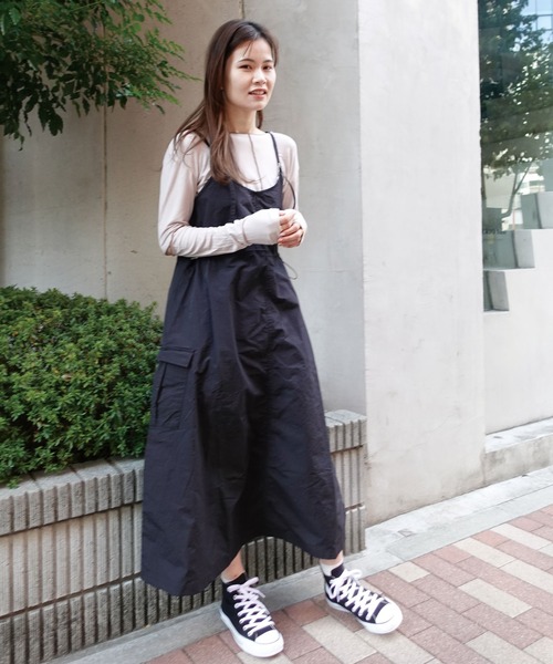 春はミリタリーテイストのキャミワンピでワンランク上のカジュアルスタイルに! シアーインナーで女性らしく、カットソーでラフなスタイリングに。などインナー次第で印象に変化をつけることが可能なジャンパースカートです。 ウエストにドロストコード付きのデザインなのでメリハリを付けていただけます。 軽量なナイロン生地とゆとりのある身幅なので着心地も快適です。 ▽生地感 透け感:あり 〇〇〇〇● なし 生地の厚さ:厚い 〇〇〇●〇 薄い 裏地:なし 伸縮性:ウエスト部分のみあり ◆商品のお気に入り登録 【お気に入りに登録】を是非ご活用ください。 再入荷の通知や、ラスト1点の通知、セールの通知がいち早く届きます。 ◆ブランドのお気に入り登録 新商品や再入荷など、いち早くブランドのお得情報が届きます。 ◆ATTENTION◆ ※取り扱いについては、商品についている品質表示でご確認ください。 ※出来る限り忠実に再現するよう務めておりますが、 ディスプレイ画面などの環境上、店頭・屋外での撮影画像は、 光の当たり具合で色味が違って見える場合が あります。ご了承下さい。 ※こちらの商品は水や雨に濡れたり、汗による湿気、乾燥状態での摩擦により、薄い色の衣服などに 色移りする可能性がございます。 予めご了承いただき、ご使用の際にはご注意くださいますようお願い致します。 ※平置きでの実寸のため若干の誤差が生じる場合がございます。 ※生産時期により若干の色ブレやサイズの変動が生じる場合がございます。 ※また製品加工上、お手元に届く際に匂いが生じる場合がありますが、 ご使用を続けていく事により匂いは軽減されます。 ※輸送時による、多少の汚れ・シワがある場合がございます。
