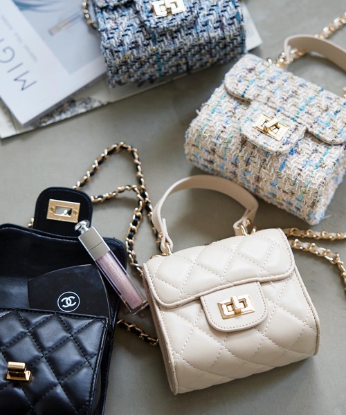ツイード素材とマットなフェイクレザーキルティングのアソートでご用意しました。華奢なチェーンショルダーが女性らしいデザインです。手持ちや、肩掛け、斜め掛けとしても使えます。【素材・サイズ感】コンパクトなサイズ感でアクセサリー感覚で使えます。大きな明け口で荷物の出し入れがスムーズなのも嬉しいポイント◎。デイリーからちょっとしたお出かけまで使いやすいアイテムです。入園式 入学式 卒入園式 《KOBE LETTUCE ー神戸レタスー》 プチプラレディースファッションからコスメまで、トレンドアイテムを豊富に取り揃えております。 毎シーズン発売されるインフルエンサーとのコラボ商品はSNSでも話題に。