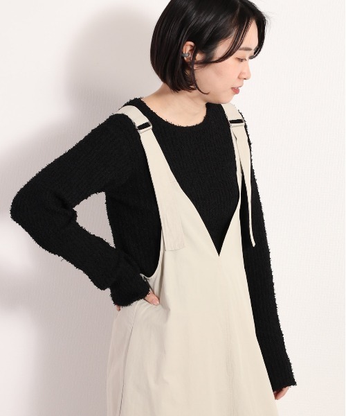 もこもこしたコンパクトリブ編みニット◇Point◇伸縮性のあるコンパクトな着丈のリブニット表面はタオルのようなモップのようなシャギー素材で柔らかくモチモチとした肌ざわり少し厚め生地なので、すっきりタイトに見せることでバランスのよいスタイルが叶います◇Material◇シャギー素材で柔らかくモチモチとした肌ざわり伸縮性抜群お手入れは手洗い可能◇Coordinate◇メリハリのあるシルエットにするのがおすすめタイトなトップスなのでワイドボトムやスカートに合わせたシンプルなスタイルが◎キャミワンピース、ジャンスカといったアイテムのインナーにもおススメ※照明や天候により実際の色味と異なって見える場合がございます。ご了承くださいませ。