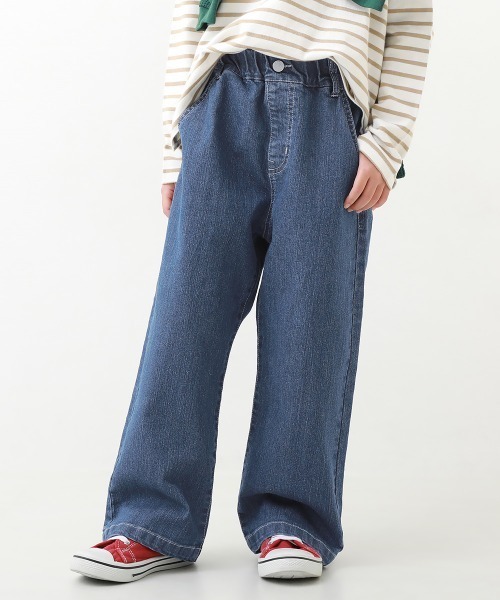 シルエットにこだわった『楽デニム ワイドパンツ』広がりすぎないシルエットが、カジュアルすぎず、すっきりとした印象を与えるワイドデニム。デイリーコーデからお出かけコーデまで大活躍するデニムパンツは、1人1本は持っていたいアイテムです。■シリーズ"はかせたい”と"はきたい”がぴったり合う親がデニムをはかせたい理由はたくさんあるけど子どもが嫌がる理由はただ1つ、"固くて動きにくい"。そんな行き違う気持ちがぴったり合えば、親子はもっとHAPPYになれる。そんな思いから、楽デニムシリーズは生まれました。ママやパパがはかせたくなる"デザイン性の高さ"と、子どもの"はき心地の良さ"を両立した、devirockの自信作です。■素材シルエットとはき心地を追及したデニム素材シルエットの美しさと、あらゆる動きにフィットするストレッチ性にこだわりました。程よい厚みなので、デニムが苦手なお子さまにもおすすめです。伸縮性:あり■スタイリングカラフルなトップスを合わせると今年らしい着こなしに。トップスをインしてベルトを見せる大人っぽいスタイリングもおすすめです。■洗濯方法洗濯機洗い可 / 弱い洗濯処理 / 漂白剤使用不可 / タンブル乾燥不可 / 日陰つり干し / ドライクリーニング不可■ご注意事項・摩擦や水、汗などで色が移ることがあります。ご注意ください。・平置きにて採寸しているため、サイズや形に多少の誤差が生じる場合があります。あらかじめご了承ください。・生産時期により、多少色味が異なる場合がございますが、素材・サイズ等の品質に違いはございません。・この製品はインディゴ染め素材を使用しています。 汗や摩擦、濡れたままでの放置により移染する場合がございます。 着用・洗濯を繰り返すことにより、少しずつ変化する表情や風合いをお楽しみください。ー devirockについて ー 子育てがもっと楽しくなる社会を目指し、親と子が感じる課題を解決する"新しいあたり前"を提案しています。 男の子・女の子のデイリーウェアを中心にラインナップ。ベーシックからトレンドまで幅広いデザインと、ベビーからキッズまでの豊富なサイズ展開が魅力の子供服ブランドです。