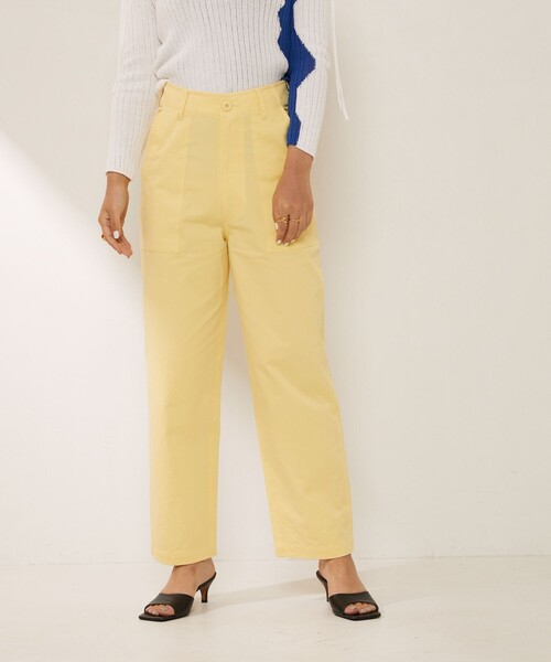 【2023 Spring & Summer 】 Aresense フランス軍の古着をベースに、綺麗めにも履きやすいベイカーパンツ ●素材 程よい厚みのあるコットンクロスのパンツ。 生地洗いを施し、程よい柔らかさに仕上げた綿100%の生地を使用。 ●シルエット ハイウエストでスタイルアップ見えが叶う、シルエットにこだわったベイカーパンツです。 ストレートシルエットで脚のラインを拾いすぎないところも魅力。 春らしい淡いカラー展開で、女性らしく綺麗めに着用頂けます。 ●こだわり フランス軍の古着をベースにAresenseらしい、どこか女性らしさのある1着に仕上げました。 大きなパッチポケットやバックの大きめのフラップポケット等のディテールはそのままに 形にはこだわり股上が深くヒップ周りにゆとりを持たせた綺麗なテーパードシルエットが脚を長く綺麗に見せてくれて、春らしいカラーリングで女性らしく履いて頂けるベイカーパンツ オールシーズン、シーズンレスで履いて頂けるアイテムです。 ※ホワイトとイエローは透け感があります。予めご了承下さい。 -------------------------------------------------- 透け感:あり(オリーブとピンクは透け感無し) 裏地:なし 伸縮性:なし 光沢感:なし 生地の厚み:普通 -------------------------------------------------- ※掲載画像の商品の色味は、屋外や屋内の光の照射や角度により実物と色味が異なる場合がございます。また表示のサイズ感と実物は若干異なる場合もございますので、予めご了承ください。 ※着用、お取り扱いの際は、商品についている品質表示とアテンションタグを必ずご確認下さい。 【Aresense/アーセンス】 ”Aresense”は、「Make sense(理にかなう)」を意味するラテン古語を由来とする言葉。 「心地のよさ」を大切に、機能性とホームケアに配慮したコンフォートアイテムと洗練されたスタイリングで、自分らしい美しさを提案します。