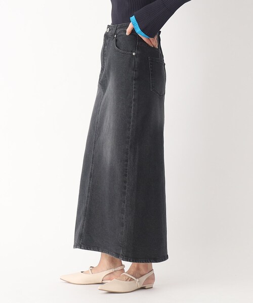ブーツ合わせが可愛いロング丈のデニムスカート! ナローシルエットで上品なカジュアルスタイルにぴったりです。 【デザイン】 ・ウエストからヒップにかけてすっきり綺麗に見えるナローシルエット ・程よい深さの後ろスリットデザインで足さばきも良く快適な穿き心地です ・タイトでもルーズなシルエットのトップスでもバランスがとりやすく相性◎ ・014カラーは同色ステッチ。092、094カラーはベージュ系ステッチカラー ・デニム定番の5ポケット仕様 ※ポケット数:前×3 後ろ×2 【素材】 ・本格的なデニムの表情にこだわった12.5oz(オンス)のほどよい厚みのあるデニム素材。シーズンを問わず着用いただけます。 ・キレイ目にもこなしやすい加工感 ・ストレッチ性があり楽な穿き心地 ※裏地なし 【カラー】 ・014カラー:ブラックフェード(ブラックデニムのウォッシュド加工) ・092カラー:ユーズド(ウオッシュド風加工) ・094カラー:ワンウォッシュ ------------------ 【C(シー) OPAQUE.CLIP】 「PLAYFUL FEMININE」をキーワードに、天然素材と美しくポジティブなカラー、ワクワクするようなディティールや、ミックス感のあるスタイルなどファッションの楽しさを詰め込んだ新レーベルです。 こちらの商品は主に春夏に着用いただける商品です。 モデル情報:身長165cm B72 W57 H84 着用サイズ:38(M) 店舗へのお問い合わせ商品番号:637-76201 ●製品寸法: 36(S):W67cm H85cm 総丈87cm 38(M):W70cm H88cm 総丈89cm 備考: