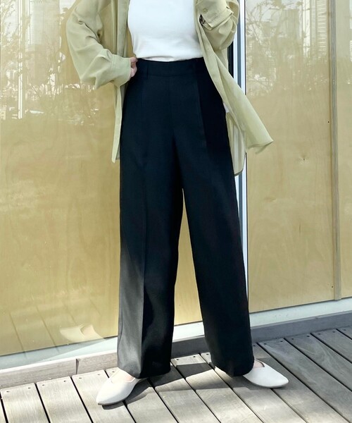 程よい肉感でハリ感があるのでボディラインを拾いにくいワイドパンツ【素材】小さなポコポコした凹凸が生地が見せる表情を豊かにしてくれる素材。※裏地なし【デザイン】センタープレス入りで脚のラインをスッキリ!するんと脱げるジップレス&後ろウエストはゴム仕様ととてもラクチンな穿き心地です。オフホワイト(203)カラーがチェック、残りのブラック(019)、イエローグリーン(025)は無地の3色展開です。※ポケット数:横×2モデル情報:身長168cm B76 W58 H86 着用サイズ:02(M)店舗へのお問い合わせ商品番号:741-66004●製品寸法:02(M):W68~92cm H106cm 股下67cm 前股上30cm 渡り幅35cm 裾幅25cm03(L):W71~95cm H109cm 股下68cm 前股上30cm 渡り幅37cm 裾幅26cm04(LL):W74~98cm H112cm 股下69cm 前股上31cm 渡り幅38cm 裾幅26cm備考: