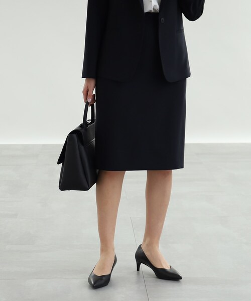 【デザインポイント】 すっきりときれいなラインのストレートスカートです。 身体にフィットしすぎないサイズ感なので肉を拾わずストンと落ちてきれいなシルエットで安心して着用頂けます。 丁度膝の隠れる丈なので上品な印象です。 ※ポケットなし 【スタイリングポイント】 同素材のジャケット(46040,46041)と合わせたキレイめセットアップスタイルはもちろん、単品としてニットやブラウスと合わせたオフィススタイルもおすすめです。 【素材ポイント】 この素材は、すっきりとしたキレイめな表情と、清涼感のあるドライタッチが特徴の梳毛調合繊になります。 適度なストレッチ性を持ったリラクシーな着心地に、シワになりずらいイージーケア性/UVケア性も兼ね備えた素材になっております。 ※裏地あり ※この製品は、太陽光線中の紫外線(UV)を通しにくくします。この効果は永久的ではありません。 【生地詳細】 透け感:なし 伸縮性:ややあり 生地の厚み:薄手 裏地:あり 洗濯方法:洗濯機洗い可 こちらの商品は主に夏に着用いただける商品です。 モデル情報:身長167cm B78 W61 H87 着用サイズ:38(M) 店舗へのお問い合わせ商品番号:127-76040 ●製品寸法: 03(XXXS):W59cm H85cm 総丈59cm 05(XXS):W62cm H88cm 総丈60cm 12(LL):W75cm H101cm 総丈65cm 13(LL):W79cm H105cm 総丈65cm 15(3L):W83cm H109cm 総丈65cm 17(4L):W87cm H113cm 総丈66cm 19(5L):W91cm H117cm 総丈67cm 34(S):W62cm H88cm 総丈62cm 36(S):W65cm H91cm 総丈62cm 38(M):W68cm H94cm 総丈63cm 40(L):W71cm H97cm 総丈64cm 42(L):W74cm H100cm 総丈65cm 備考: