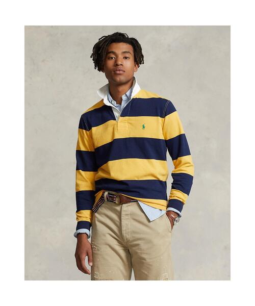 柔らかなコットンジャージーで仕立てたラガーシャツ。大胆なストライプとシグネチャーのポニー刺繍が特徴の一着。・クラシックフィット:Ralph Laurenで最もゆったりとしたシルエット / 低いアームホールとゆったりとした袖・ツイルのラグビーカラー / 3つボタンの前立て / ラバーボタン・長袖、リブカフス・ストレートなスリット入りの裾・左胸にシグネチャーのポニー刺繍・洗濯機洗い可 ・モデル身長185cm、着用サイズM※ポニーの位置がボーダー上で若干異なる場合がございます。予めご了承くださいませ。 ポロ ラルフ ローレン