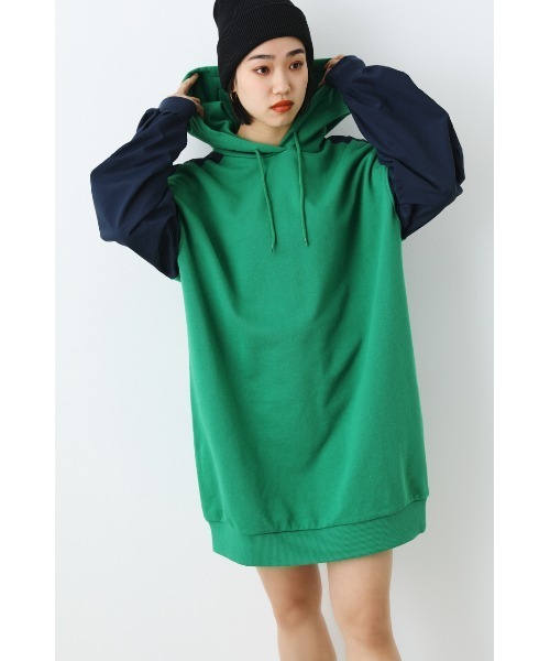 袖部分と背裏にナイロン素材をドッキングしたフードスウェットワンピース。1枚で、ブーツ合わせやスカートやボトムを合わせてルーズトップスとしても着用できるアイテムです。 ▼商品のお気に入り登録お気に入りアイテムの値下げ・再入荷・在庫1点などの通知を受け取ることができます。 ▼ブランドのお気に入り登録新作アイテムの入荷や人気アイテムの再入荷、タイムセールやクーポンなど、いち早くブランドのお得な情報を受け取ることができます。