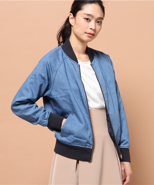 従来のデニム生地より光沢を持たせ、非常に軽い着心地が魅力のデニムMA-1ジャケット。 ラグラン仕様にする事で肩幅など気にせず、非常に動きやす使用になっております。 無駄を省いたデザインでカジュアルからキレイ目まで幅広く着用して頂く事が可能です。 インナーにはTシャツは勿論、ニット、シャツなどと合わせて頂くのもオススメです。