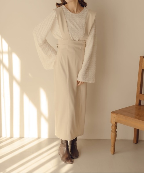 サラッとした落ち感のある生地で 歩くたび程よくドレープ感の漂うジャンパースカート。 サイドにはベルトデザインが施され 目を惹くワンポイントに。 ショルダーは太めのワイドデザイン、 ハイウエストのナローシルエットが美しい1着です。 ショルダーは長さ調節と取り外すこともでき、 ナロースカートとしても着用頂けます。 --------------------------------------- 生地の厚さ:★★☆☆☆ 透け感:なし 裏地:なし --------------------------------------- 【fupel by epnok / フペル バイ エプノック】 色褪せない自分らしさ。 日常にときめきを添える 昨日よりも少しだけ好きな自分に。 -オフィシャルInstagramにて最新情報や限定情報を毎日更新中!- ▼商品のお気に入り登録 完売カラーの再入荷通知や、ラスト1点、セールの通知をお知らせ致します。 ▼ブランドお気に入り登録 新商品や再入荷など、いち早くブランドの情報を受け取ることができます。 ※サイトに表示されているカラー名と実際のお届け商品に記載されているカラー名が異なる場合がございます。 ※ご注文いただいた予約商品のお届け時期の確認は、注文履歴ページより行えます