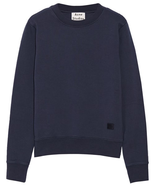 Arbiter of Scandinavian cool Acne Studios is our go-to for minimalist streetwear. This cozy cotton-blend sweatshirt has the brand's signature emoticon motif stitched just above the hip. Finish your look with skinny jeans and ankle boots. Navy cotton-blend Slips on 80% cotton, 20% polyester Machine wash